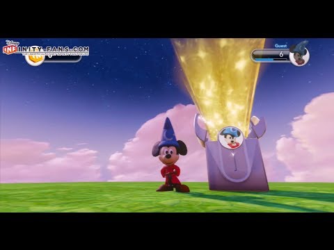 http://www.disneyinfinityfans.com Disney Infinity Sorcerer's Apprentice Mickey Mouse opening Toy Box chests including Sorcerer's Apprentice Mickey costume, Fantasmic villain pack and Mickey's spellbound sky